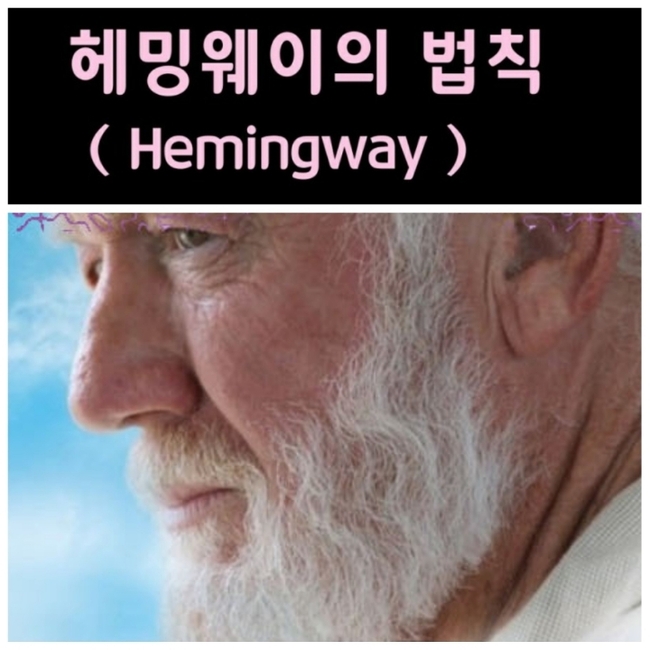 이를 '헤밍웨이의 법칙'이라고 한다. 요즘처럼 어려울 때일수록 더더욱 필요한 행복의 법칙이 아닐까...