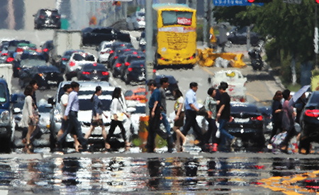폭염으로 도로 위에 아지랑이가 피어오르는 모습. 동아일보 자료사진