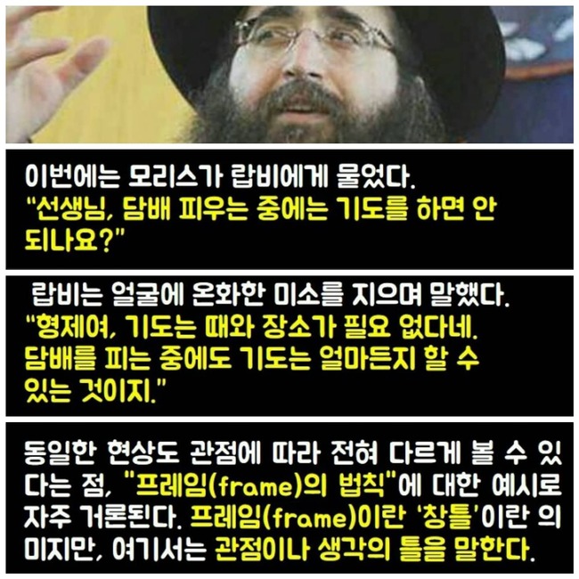 동일한 현상도 프레임(Frame) 또는 관점에 따라 전혀 다르게 볼 수 있다. 프레임의 법칙이다.