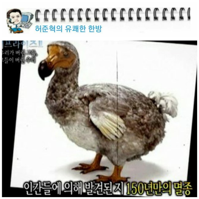 대항해시대이던 1500년경... 포르투갈 선원들은 인도양의 작은 섬 모리셔스섬에 도착한 포르투갈 선원들을 처음 반긴건 커다란 새였습니다. 도도새... 작은 섬에서 천적없이 지내면서 날지않아도 되었기에 날개가 퇴화되어 땅위를 걸어다니며, 인간을 무서워하지않던 이 새는 1600년말 멸종하고 맙니다.