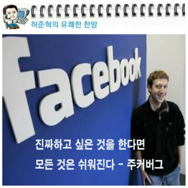 주커버그는 말한다. "진짜하고 싶은 것을 한다면 모든 것은 쉬워진다"고... 그의 말처럼 쉬운 일을 하고 싶다면, 먼저 자신이 정말 하고싶은 일을 하면된다.