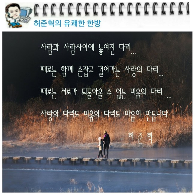 사람과 사람사이에 놓여진 다리는 함께 손잡고 걸어가는 사랑의 다리가 되기도 하고, 되돌아올수 없는 미움의 다리가 되기도 합니다.