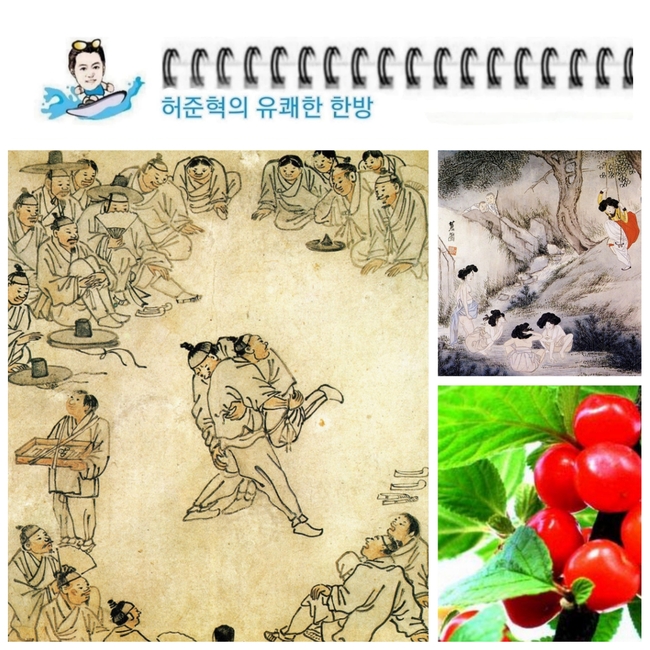 과실중에 가장 먼저 있는 익는 것이 앵두... 앵두는 단오절이 제철이며 앵두편, 앵두화채는 단옷날 민가에서 즐겨 만들어 먹던 청량음료이다.