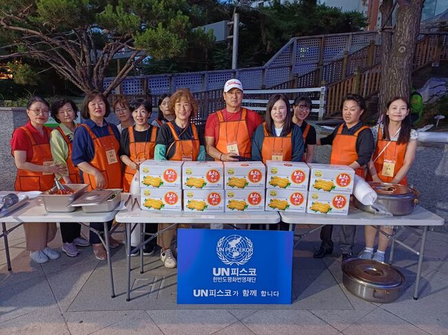 UN피스코(이사장 김덕룡)는 밥사랑 열린공동체(이사장 박희돈)와 남서울노회 여전도연합회(회장 이순영 권사)는 26일 영등도 롯데백화점 광장에서 노숙인을 위한 삼계탕+참외 나눔 봉사활동을 진행했다.